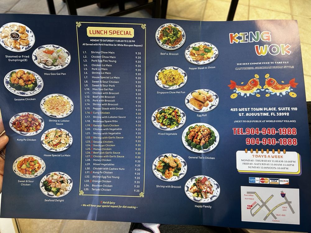 Welcome to King Wok, your ultimate destination for authentic Chinese cuisine in Saint Augustine, FL. Nestled at 425 W Town Pl, this casual dining spot invites you to experience a delightful medley of flavors in a family-friendly atmosphere.